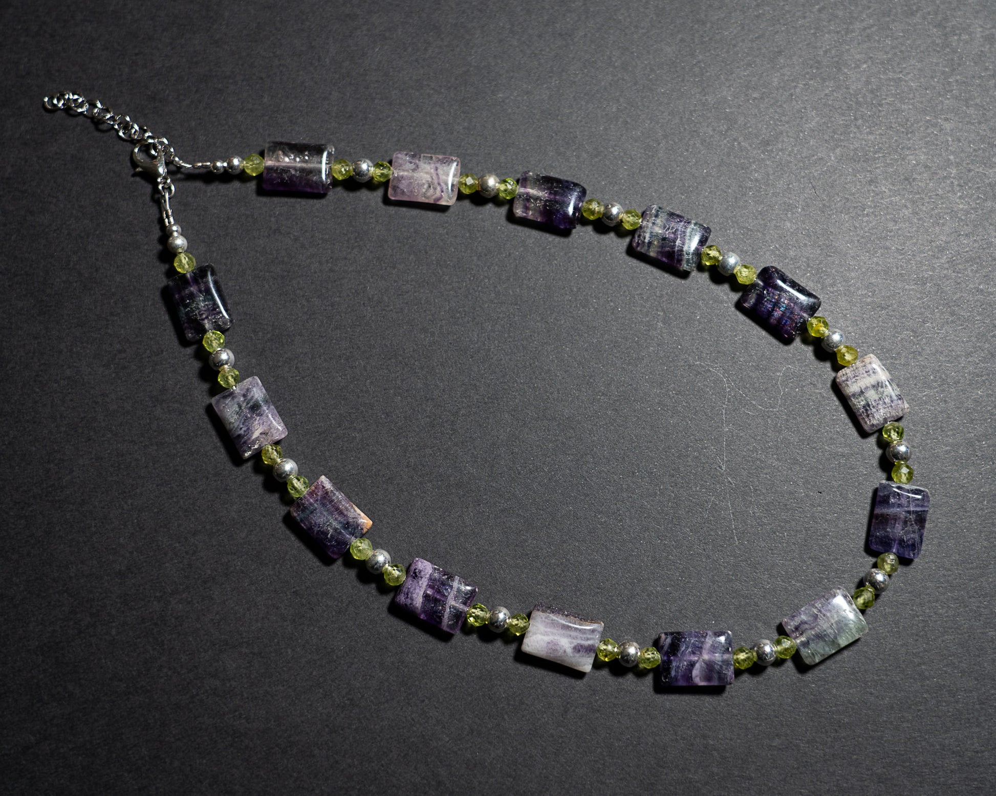 Indulge in the allure of natural gemstones and timeless craftsmanship with our Handcrafted Fluorite and Peridot Necklace. Embrace the beauty of nature and make a statement wherever you go with this exquisite piece of jewelry.