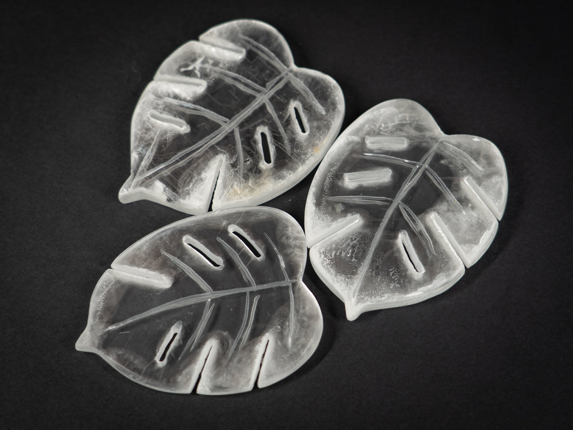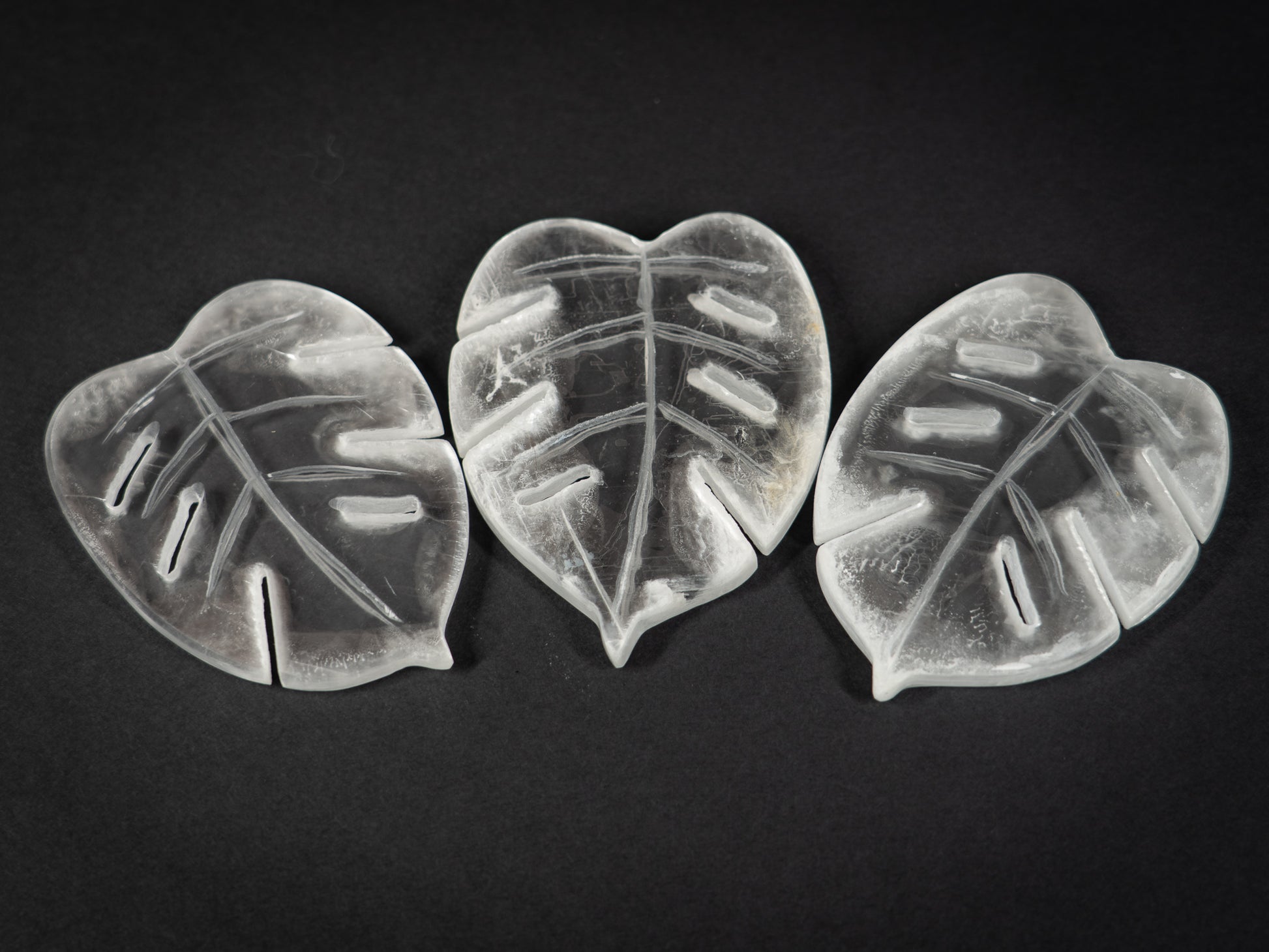 Selenite Tropical Leaf carvings.